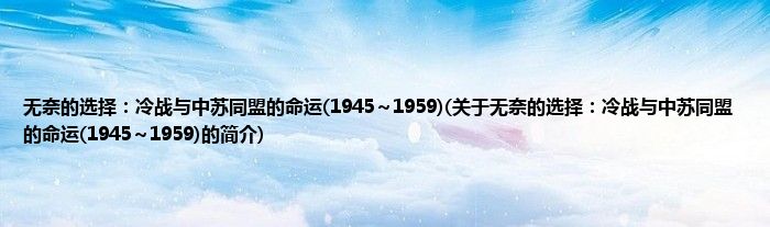 大家好,无奈的选择:冷战与中苏同盟的命运,1945~1959,关于无奈的选择:冷战与中苏同盟的命运,1945~1959的简介很多人还不知道,现在让我们一起来看看吧!