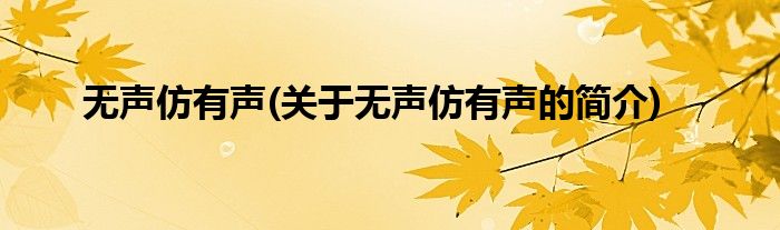 大家好,无声仿有声,关于无声仿有声的简介很多人还不知道,现在让我们一起来看看吧!