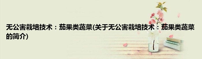 本文关于无公害栽培技术:茄果类蔬菜的简介就讲解完毕,希望对大家有所帮助。