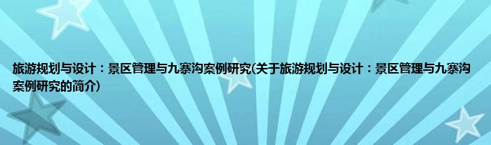 本文关于旅游规划与设计:景区管理与九寨沟案例研究的简介就讲解完毕,希望对大家有所帮助。