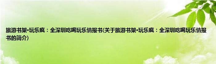 本文关于旅游书架·玩乐疯:全深圳吃喝玩乐情报书的简介就讲解完毕,希望对大家有所帮助。