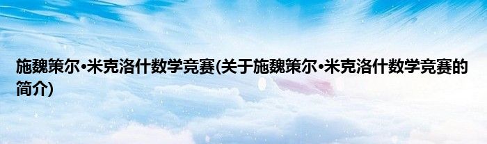 本文关于施魏策尔·米克洛什数学竞赛的简介就讲解完毕,希望对大家有所帮助。