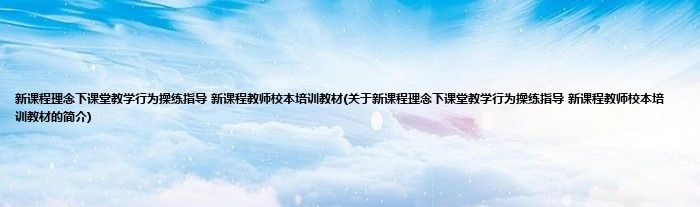 大家好,新课程理念下课堂教学行为操练指导 新课程教师校本培训教材,关于新课程理念下课堂教学行为操练指导 新课程教师校本培训教材的简介很多人还不知道,现在让我们一起来看看吧!