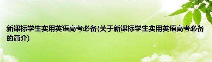 本文关于新课标学生实用英语高考必备的简介就讲解完毕,希望对大家有所帮助。