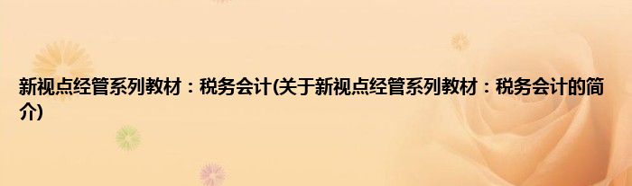 本文关于新视点经管系列教材:税务会计的简介就讲解完毕,希望对大家有所帮助。