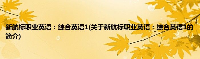 本文关于新航标职业英语:综合英语1的简介就讲解完毕,希望对大家有所帮助。