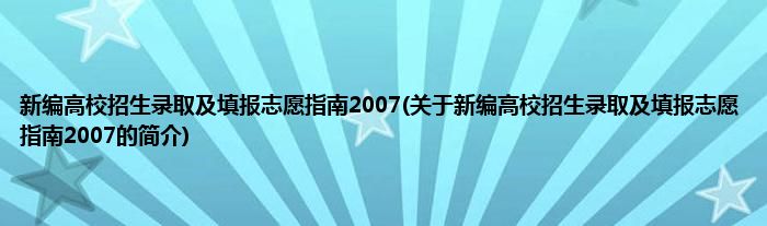 新编高校招生录取及填报志愿指南2007(关于新编高校招生录取及填报志愿指南2007的简介)