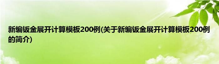 本文关于新编钣金展开计算模板200例的简介就讲解完毕,希望对大家有所帮助。