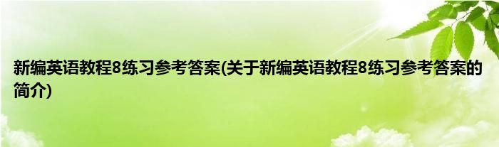 本文关于新编英语教程8练习参考答案的简介就讲解完毕,希望对大家有所帮助。