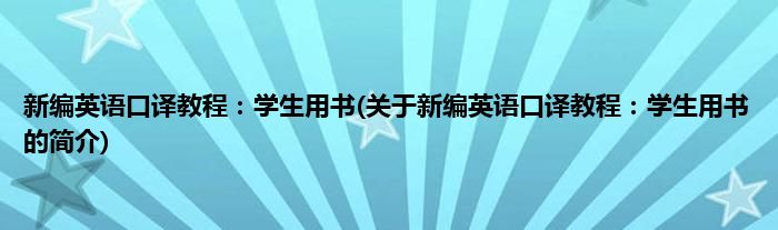 本文关于新编英语口译教程:学生用书的简介就讲解完毕,希望对大家有所帮助。