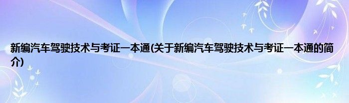本文关于新编汽车驾驶技术与考证一本通的简介就讲解完毕,希望对大家有所帮助。