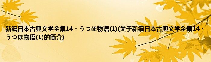 本文关于新编日本古典文学全集14・うつほ物语(1)的简介就讲解完毕,希望对大家有所帮助。