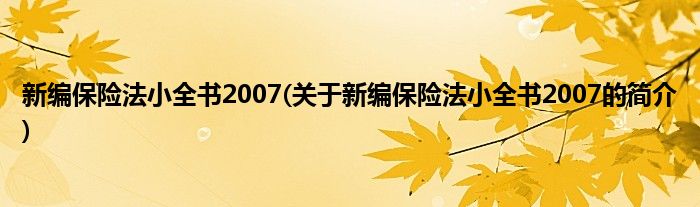 本文关于新编保险法小全书2007的简介就讲解完毕,希望对大家有所帮助。