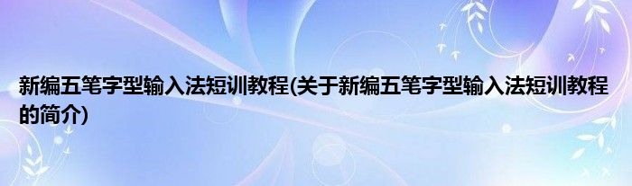 本文关于新编五笔字型输入法短训教程的简介就讲解完毕,希望对大家有所帮助。