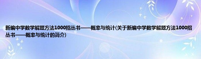 本文关于新编中学数学解题方法1000招丛书——概率与统计的简介就讲解完毕,希望对大家有所帮助。