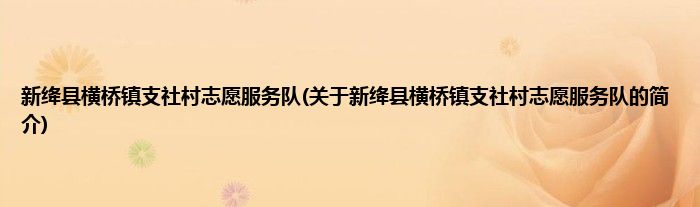 本文关于新绛县横桥镇支社村志愿服务队的简介就讲解完毕,希望对大家有所帮助。