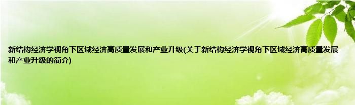 本文关于新结构经济学视角下区域经济高质量发展和产业升级的简介就讲解完毕,希望对大家有所帮助。