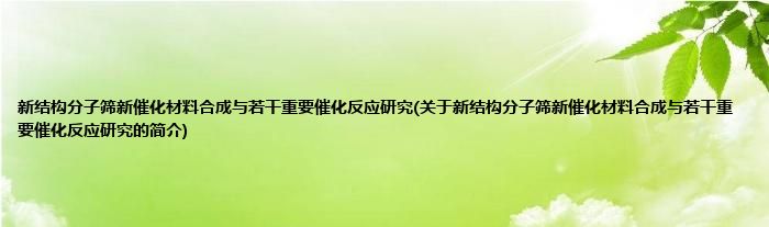 本文关于新结构分子筛新催化材料合成与若干重要催化反应研究的简介就讲解完毕,希望对大家有所帮助。