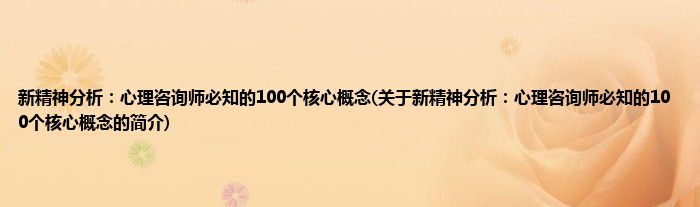 本文关于新精神分析:心理咨询师必知的100个核心概念的简介就讲解完毕,希望对大家有所帮助。