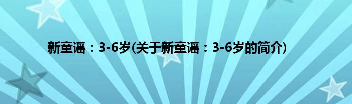 大家好,新童谣:3-6岁,关于新童谣:3-6岁的简介很多人还不知道,现在让我们一起来看看吧!
