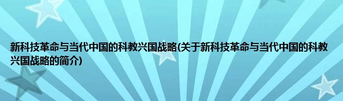 本文关于新科技革命与当代中国的科教兴国战略的简介就讲解完毕,希望对大家有所帮助。
