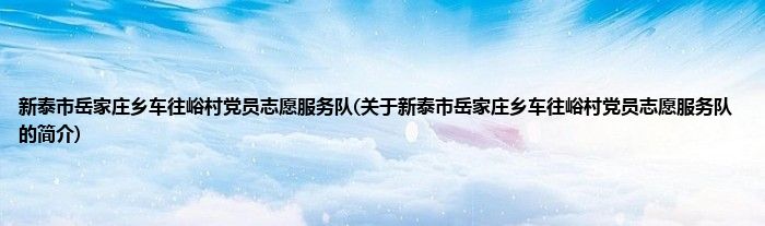 1、 新泰市岳家庄乡车往峪村党员志愿服务队是由新泰市党员志愿服务总队领导下的志愿团体。