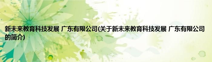 本文关于新未来教育科技发展 广东有限公司的简介就讲解完毕,希望对大家有所帮助。
