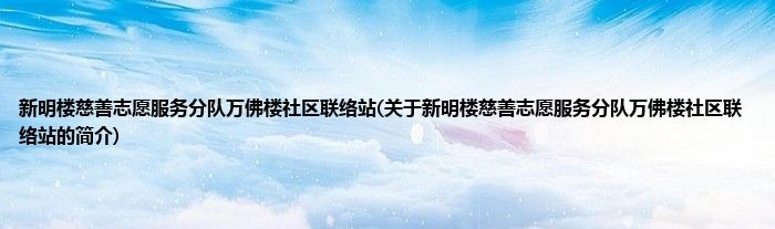 本文关于新明楼慈善志愿服务分队万佛楼社区联络站的简介就讲解完毕,希望对大家有所帮助。