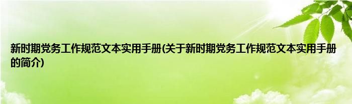 本文关于新时期党务工作规范文本实用手册的简介就讲解完毕,希望对大家有所帮助。