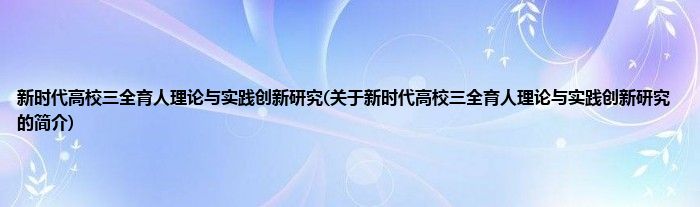 本文关于新时代高校三全育人理论与实践创新研究的简介就讲解完毕,希望对大家有所帮助。