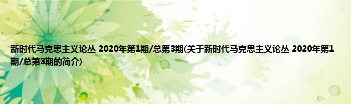 本文关于新时代马克思主义论丛 2020年第1期/总第3期的简介就讲解完毕,希望对大家有所帮助。