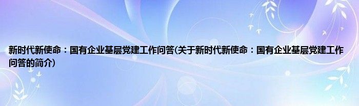 本文关于新时代新使命:国有企业基层党建工作问答的简介就讲解完毕,希望对大家有所帮助。
