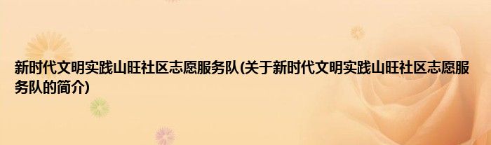 本文关于新时代文明实践山旺社区志愿服务队的简介就讲解完毕,希望对大家有所帮助。