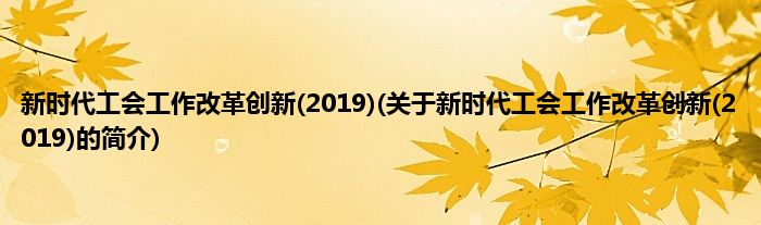 大家好,新时代工会工作改革创新,2019,关于新时代工会工作改革创新,2019的简介很多人还不知道,现在让我们一起来看看吧!