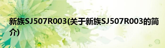 本文关于新族SJ507R003的简介就讲解完毕,希望对大家有所帮助。