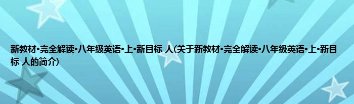 本文关于新教材·完全解读·八年级英语·上·新目标 人的简介就讲解完毕,希望对大家有所帮助。
