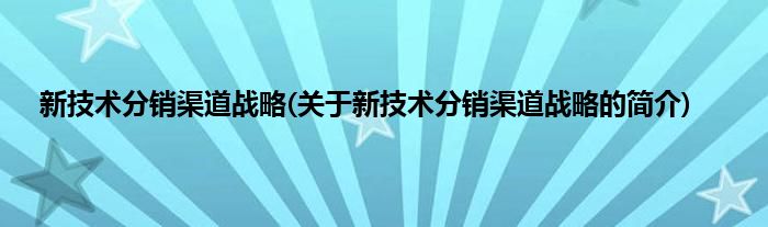 大家好,新技术分销渠道战略,关于新技术分销渠道战略的简介很多人还不知道,现在让我们一起来看看吧!