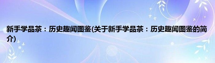 本文关于新手学品茶:历史趣闻图鉴的简介就讲解完毕,希望对大家有所帮助。