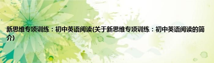大家好,新思维专项训练:初中英语阅读,关于新思维专项训练:初中英语阅读的简介很多人还不知道,现在让我们一起来看看吧!