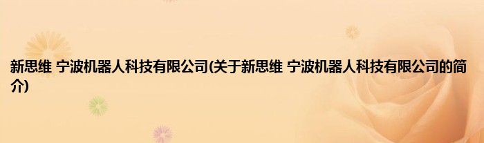 本文关于新思维 宁波机器人科技有限公司的简介就讲解完毕,希望对大家有所帮助。