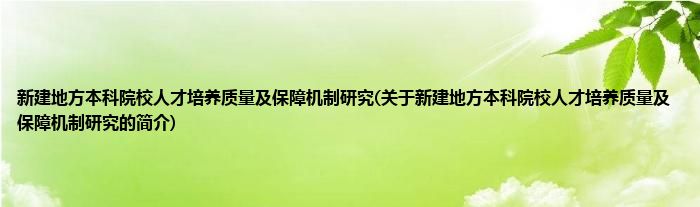 本文关于新建地方本科院校人才培养质量及保障机制研究的简介就讲解完毕,希望对大家有所帮助。