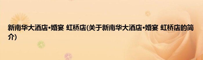 本文关于新南华大酒店·婚宴 虹桥店的简介就讲解完毕,希望对大家有所帮助。