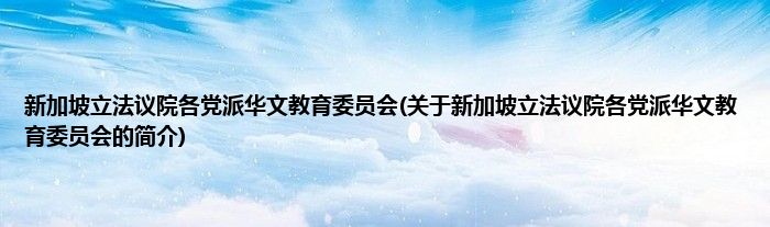 大家好,新加坡立法议院各党派华文教育委员会,关于新加坡立法议院各党派华文教育委员会的简介很多人还不知道,现在让我们一起来看看吧!