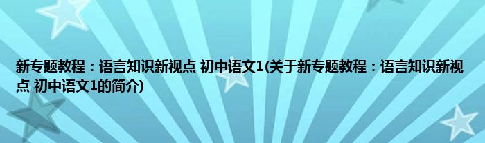 本文关于新专题教程:语言知识新视点 初中语文1的简介就讲解完毕,希望对大家有所帮助。