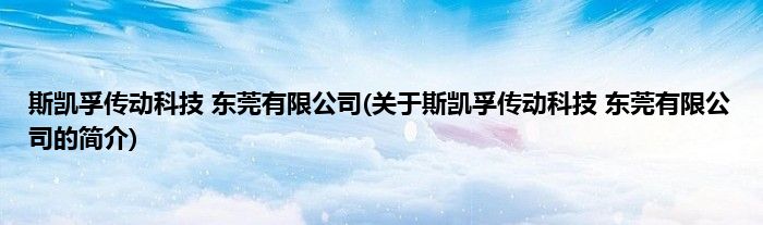 大家好,斯凯孚传动科技 东莞有限公司,关于斯凯孚传动科技 东莞有限公司的简介很多人还不知道,现在让我们一起来看看吧!