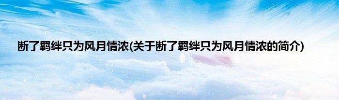 本文关于断了羁绊只为风月情浓的简介就讲解完毕,希望对大家有所帮助。
