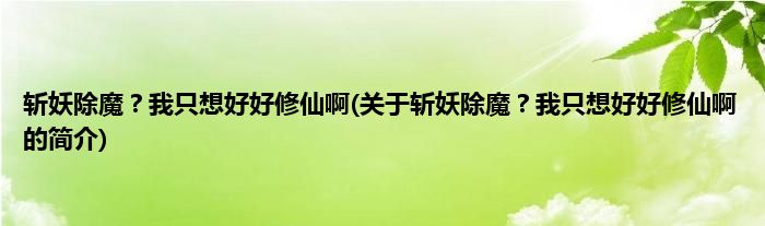 本文关于斩妖除魔?我只想好好修仙啊的简介就讲解完毕,希望对大家有所帮助。
