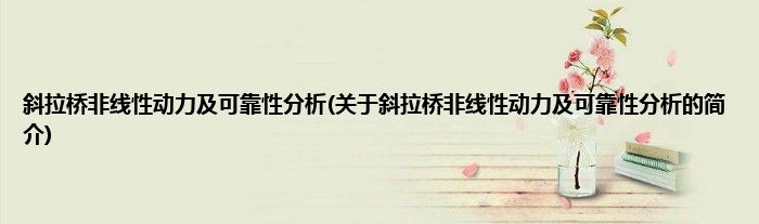 斜拉桥非线性动力及可靠性分析(关于斜拉桥非线性动力及可靠性分析的简介)
