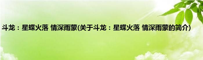 1、 《斗龙:星蝶火落,情深雨蒙》是连载于话本小说的一部短篇类网络小说,作者是泪殇离雪。