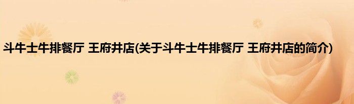本文关于斗牛士牛排餐厅 王府井店的简介就讲解完毕,希望对大家有所帮助。